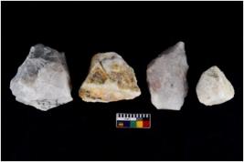| Description / विवरण | Specimen of a cores with several broad fluted marks and some of them are tapering at one end. |