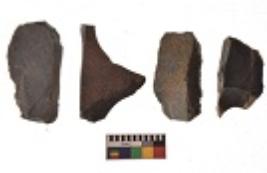 | Description / विवरण | There are n 4 utilized flakes. There are multi directional irregular scar pattern on both dorsal and ventral face of the flakes. Two are tapering at one end and two have blunted edges. |