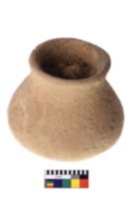 | Description / विवरण | Specimen of a miniature globular pot of Grey ware with disc base. |