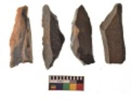 | Description / विवरण | There are n 4 utilized flakes. There are multi directional irregular scar pattern on both dorsal and ventral face of the flakes. Two are tapering at one end and two have sharp edges. |