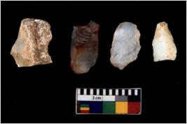 | Description / विवरण | There are n 4 cores; there are multi directional irregular scar pattern on them. The reverse bulb and platform can be seen. 1 lime stone 1 chalcedony and 2 chert |