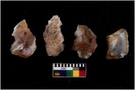 | Description / विवरण | There are n 4 of utilized worked cores and have multidirectional scar pattern. One has a flat base. |