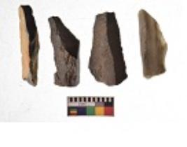 | Description / विवरण | There are n 4 utilized flakes. There are multi directional irregular scar pattern on both dorsal and ventral face of the flakes. Three are tapering at one end and one has sharp edge. |