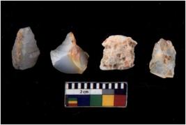 | Description / विवरण | There are n 4 of utilized worked cores and show multidirectional irregular scar pattern on both dorsal and ventral sides. Three are tapering at one end. |
