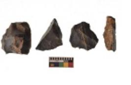| Description / विवरण | There are n 4 utilized flakes. There are multi directional irregular scar pattern on both dorsal and ventral face of the flakes. One has sharp edge and three have blunted edges. |