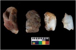 | Description / विवरण | There are n 4 flake cores. All of them are fully fluted flake cores without any trace of crested ridge flakes. Some have blunted edges and some have round edges. Few have flat base. |