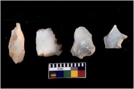 | Description / विवरण | There are n 4 of utilized worked cores and show multidirectional irregular scar pattern on both dorsal and ventral sides. Two have a broken tip. |