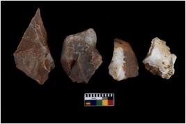 | Description / विवरण | There are n 4 cores; there are multi directional irregular scar pattern on them. Some of them are tapering at one end. Most of them having blunt edges. 4 chert |