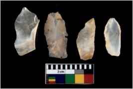 | Description / विवरण | There are n 4 utilized flake cores. There are multi directional irregular scar pattern on them. All of them are tapering at one end. |