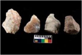 | Description / विवरण | There are n 4 of utilized worked cores. They show multidirectional irregular scar pattern and are tapering on one end. |