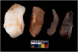 | Description / विवरण | There are n 4 cores; there are multi directional irregular scar pattern on them. Some of them are tapering at one end. 2 quartz and 2 chalcedony |