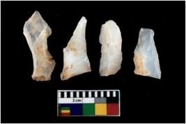 | Description / विवरण | There are n 4 utilized flake cores. There are multi directional irregular scar pattern on them. All of them are tapering at one end. |