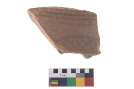 | Description / विवरण | Specimen of black on red ware with decorative geometric Criss-cross pattern painting. |