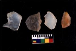 | Description / विवरण | There are n 4 flakes tool; there are flakes with sides trimmed, Marks of secondary flaking are present on the both the faces. |