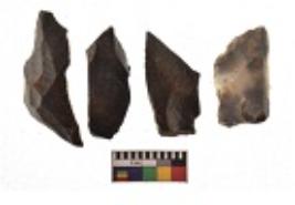 | Description / विवरण | There are n 4 utilized flakes. There are multi directional irregular scar pattern on both dorsal and ventral face of the flakes. One is tapering at one end and three have sharp edges. |