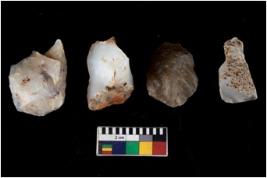 | Description / विवरण | There are n 4 flake cores. All of them are fully fluted flake cores without any trace of crested ridge flakes. Some are tapering at one end. Some have flat base and few have sharp edges. |