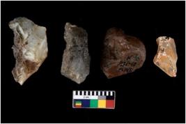 | Description / विवरण | There are n 4 flake cores. All of them are fully fluted flake cores without any trace of crested ridge flakes. Some have flat base. Some have sharp edges while some have blunted edges. |
