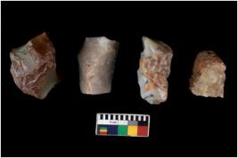 | Description / विवरण | There are n 4 flake cores. All of them are fully fluted flake cores without any trace of crested ridge flakes. Some have flat base. Some have sharp edges while some have blunted edges. |