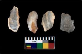 | Description / विवरण | There are n 4 utilized flake cores. There are multi directional irregular scar pattern on them. All of them are tapering at one end. |