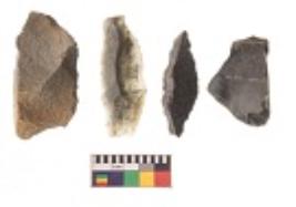 | Description / विवरण | There are n 4 utilized flakes. There are multi directional irregular scar pattern on both dorsal and ventral face of the flakes. Two are tapering at one end and two have blunted edges. |