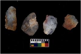 | Description / विवरण | There are n 4 cores; there are multi directional irregular scar pattern on them. The reverse bulb and platform can be seen. 3 chalcedony and 1 quartz |