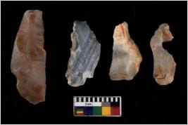 | Description / विवरण | There are n 4 flakes tool; there are flakes with sides trimmed, Marks of secondary flaking are present on the both the faces.The dorsal is relatively flat. |