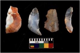 | Description / विवरण | There are n 4 flakes tool; there are flakes with sides trimmed, Marks of secondary flaking are present on the both the faces.The dorsal is relatively flat. |