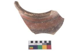 | Description / विवरण | Specimen of black on red ware with traces of decorative geometric Four parallel lines painting. |