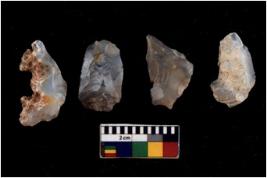 | Description / विवरण | There are n 4 flakes tool; there are flakes with sides trimmed, Marks of secondary flaking are present on the both the faces. |