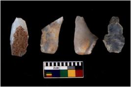 | Description / विवरण | There are n 4 flakes tool; there are flakes with sides trimmed, Marks of secondary flaking are present on the both the faces.The dorsal is relatively flat. |