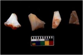 | Description / विवरण | There are n 4 cores; there are multi directional irregular scar pattern on them. The reverse bulb and platform can be seen. 2 chart and 2 quartz |
