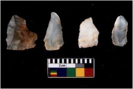 | Description / विवरण | There are n 4 flakes tool; there are flakes with sides trimmed, Marks of secondary flaking are present on the both the faces. |