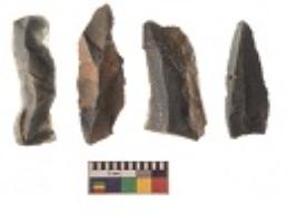 | Description / विवरण | There are n 4 utilized flakes. There are multi directional irregular scar pattern on both dorsal and ventral face of the flakes. Two are tapering at one end and two have sharp edges. |