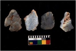 | Description / विवरण | There are n 4 flakes tool; there are flakes with sides trimmed, Marks of secondary flaking are present on the both the faces. |