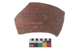 | Description / विवरण | Specimen of black on red ware with traces of decorative geometric Three parallel lines painting. |
