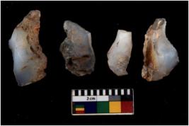 | Description / विवरण | There are n 4 flakes tool; there are flakes with sides trimmed, Marks of secondary flaking are present on the both the faces. |