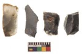 | Description / विवरण | There are n 4 utilized flakes. There are multi directional irregular scar pattern on both dorsal and ventral face of the flakes. Two are tapering at one end and two have blunted edges. |