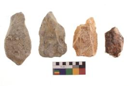 | Description / विवरण | There are n 4 of utilized worked specimens; they show large and deep scars; evident use of hammer technique.One has a broken tip. |