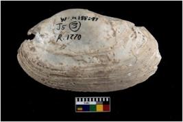 | Description / विवरण | Specimen of a large bivalve marine shell with sharp edge. Probably used for scraping the vessel. |