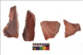 | Description / विवरण | There are n 4 flakes tool; there are flakes tool with prominent flaking marks. It made up of a large flakes with sides trimmed. It is rectangular in shaped. |