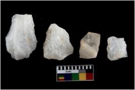 | Description / विवरण | Specimen of a cores with several broad fluted marks, the reverse bulb and platform can be seen. |