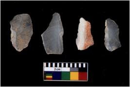 | Description / विवरण | There are n 4 flakes tool; there are flakes with sides trimmed, Marks of secondary flaking are present on the both the faces.The dorsal is relatively flat. |