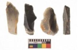| Description / विवरण | There are n 4 utilized flakes. There are multi directional irregular scar pattern on both dorsal and ventral face of the flakes. Three are tapering at one end and one has sharp edge. |