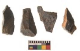 | Description / विवरण | There are n 4 utilized flakes. There are multi directional irregular scar pattern on both dorsal and ventral face of the flakes. Two are tapering at one end and two have sharp edges. |