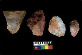 | Description / विवरण | There are n 4 flake cores. All of them are fully fluted flake cores without any trace of crested ridge flakes. Some are tapering at one end. Some have flat base and few have sharp edges. |
