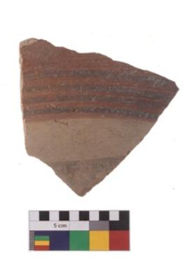 | Description / विवरण | Specimen of black on red ware with decorative geometric Four parallel lines painting. |