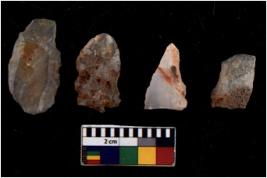 | Description / विवरण | There are n 4 flakes tool; there are flakes with sides trimmed, Marks of secondary flaking are present on the both the faces. |