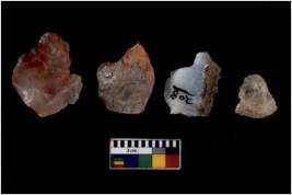 | Description / विवरण | There are n 4 cores; there are multi directional irregular scar pattern on them. The reverse bulb and platform can be seen. 4 quartz |