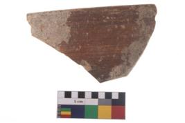 | Description / विवरण | Specimen of black on red ware with traces of decorative geometric Four parallel lines painting. |