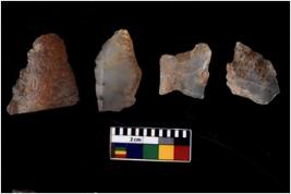 | Description / विवरण | There are n 4 flakes tool; there are flakes with sides trimmed, Marks of secondary flaking are present on the both the faces.The dorsal is relatively flat. |